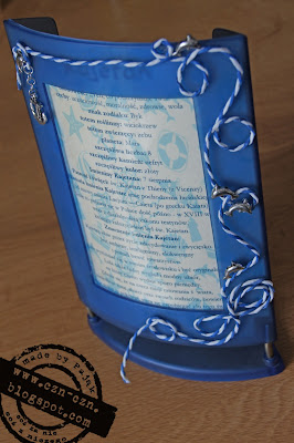 Zapowiedź tych cudeniek pojawiła się jakiś czas temu w pozostawionym komentarzu na moim blogu... Czekałam, czekałam i w końcu doczekałam się :) Morskie dekoracje - genialne, idealne do pokoju małego smyka, a wyeksponowana szpitalna bransoletka odbiera mowę z zachwytu :) Oczywiście rameczka ze znaczeniem imienia też cudna!